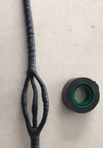 第六步:用自粘帶對以包扎完高粘帶部分繼續(xù)以半疊繞狀態(tài)進行包扎,往返一次包扎且延伸到外護套處,包扎緊實。